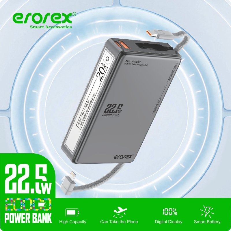 1 USB & 1 Type-C Port , Built-in Cable Type C & Lightening